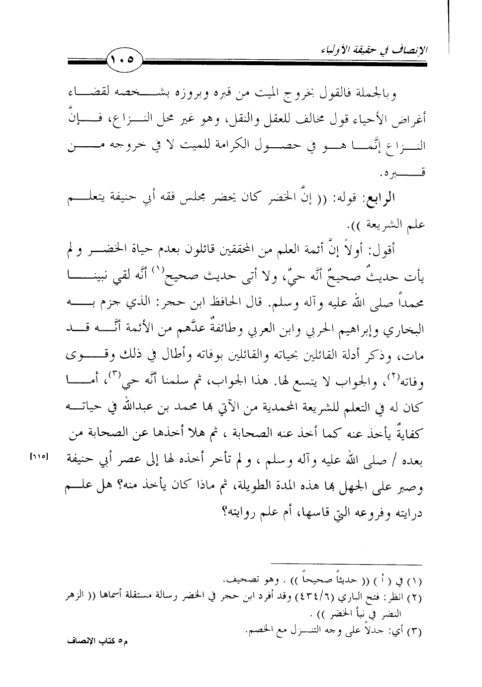 2 انظر: فتح الباري (6/434) وقد أفرد ابن حجر في الخضر رسالة مستقلة أسماها "الزهر النضر في نبأ الخضر".
