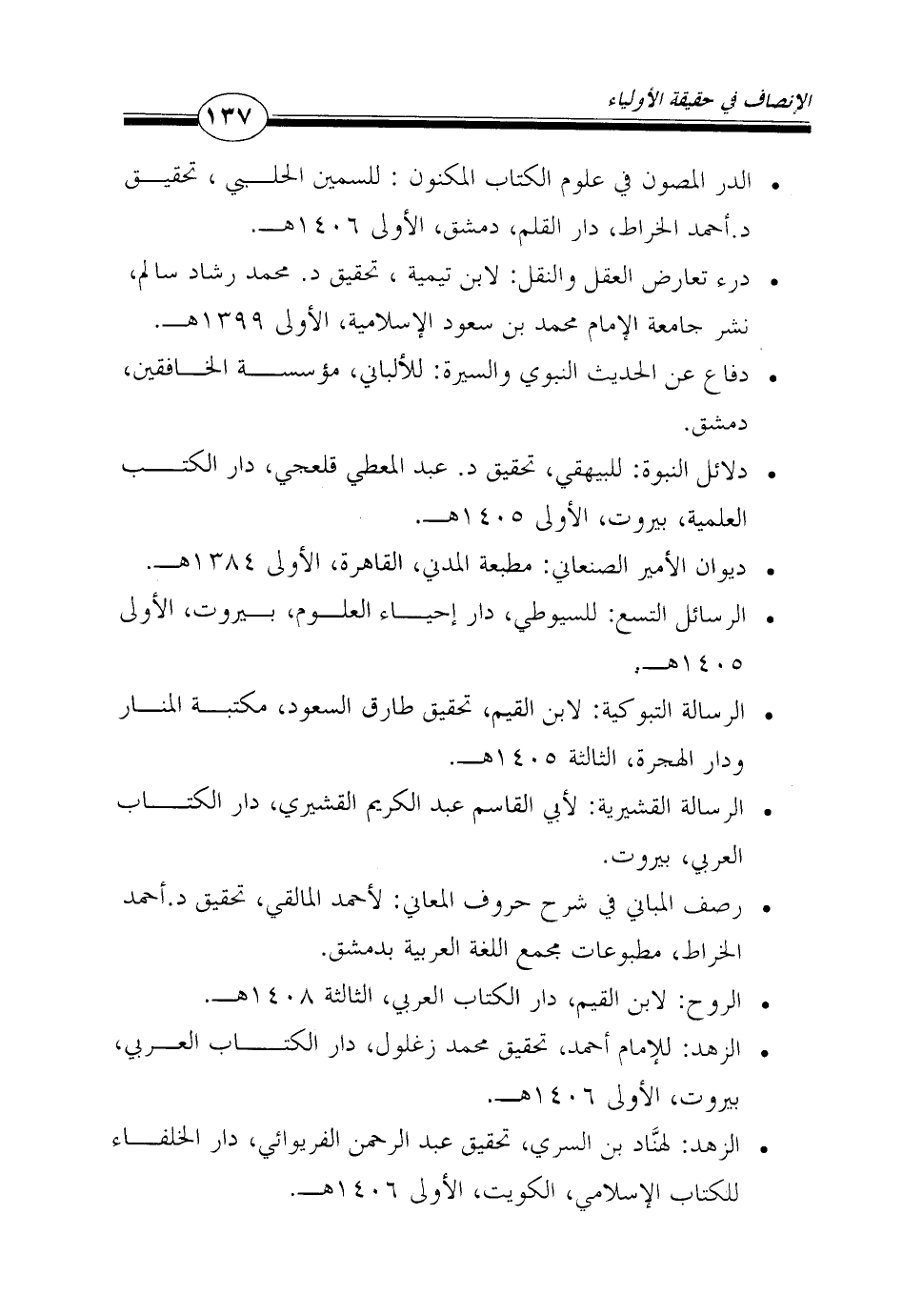 كتاب الإنصاف في حقيقة الأولياء ومالهم من الكرامات والألطاف