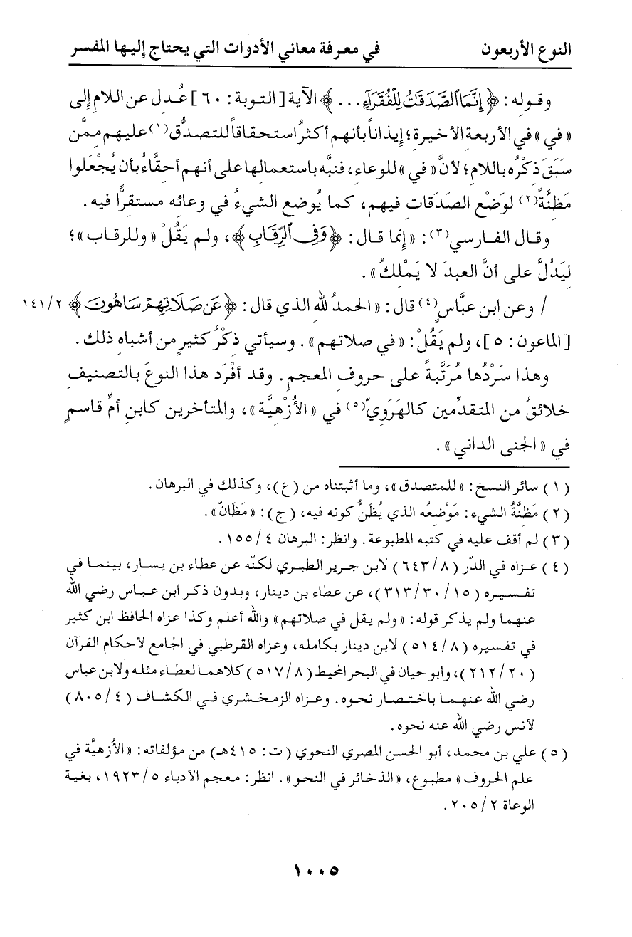 2930 وقوله تعالى { إنما الصدقات للفقراء } الآية عدل عن اللام إلى في في الأربعة الأخيرة إيذانا إلى أنهم أكثر استحقاقا للمتصدق عليهم بمن سبق ذكره باللام لأن في للوعاء فنبه باستعمالها على أنهم أحقاء بأن يجعلوا مظنة لوضع الصدقات فيهم كما يوضع الشيء في وعائه مستقرا فيه