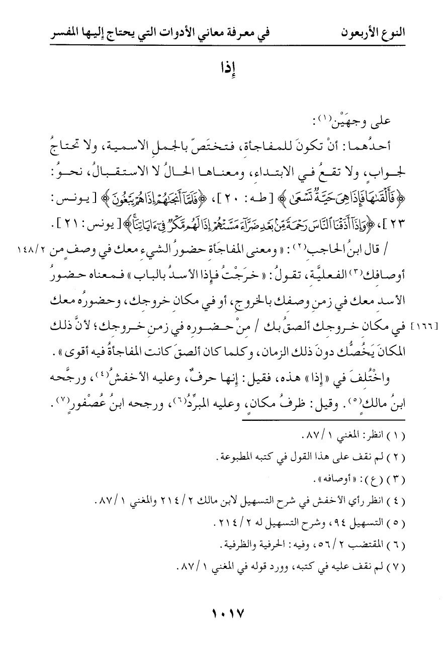 2956 أحدهما أن تكون للمفاجأة فتختص بالجمل الإسمية ولا تحتاج