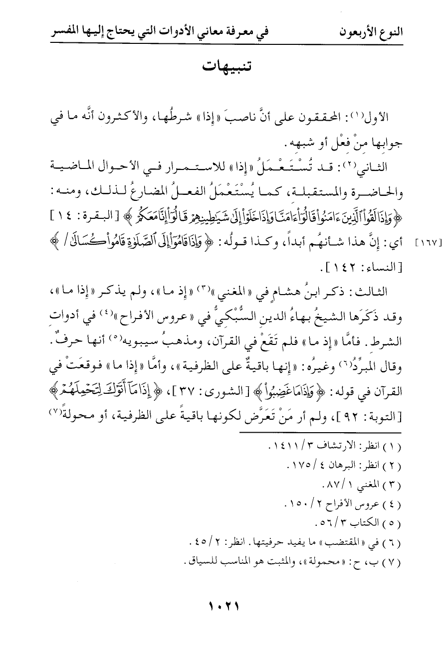 2963 قد تستعمل إذا للاستمرار في الأحوال الماضية والحاضرة والمستقبلة كما يستعمل الفعل المضارع لذلك ومنه { وإذا لقوا الذين آمنوا قالوا آمنا وإذا خلوا إلى شياطينهم قالوا إنا معكم إنما نحن مستهزؤون } أي هذا شأنهم أبدا وكذا قوله تعالى { وإذا قاموا إلى الصلاة قاموا كسالى } الثالث