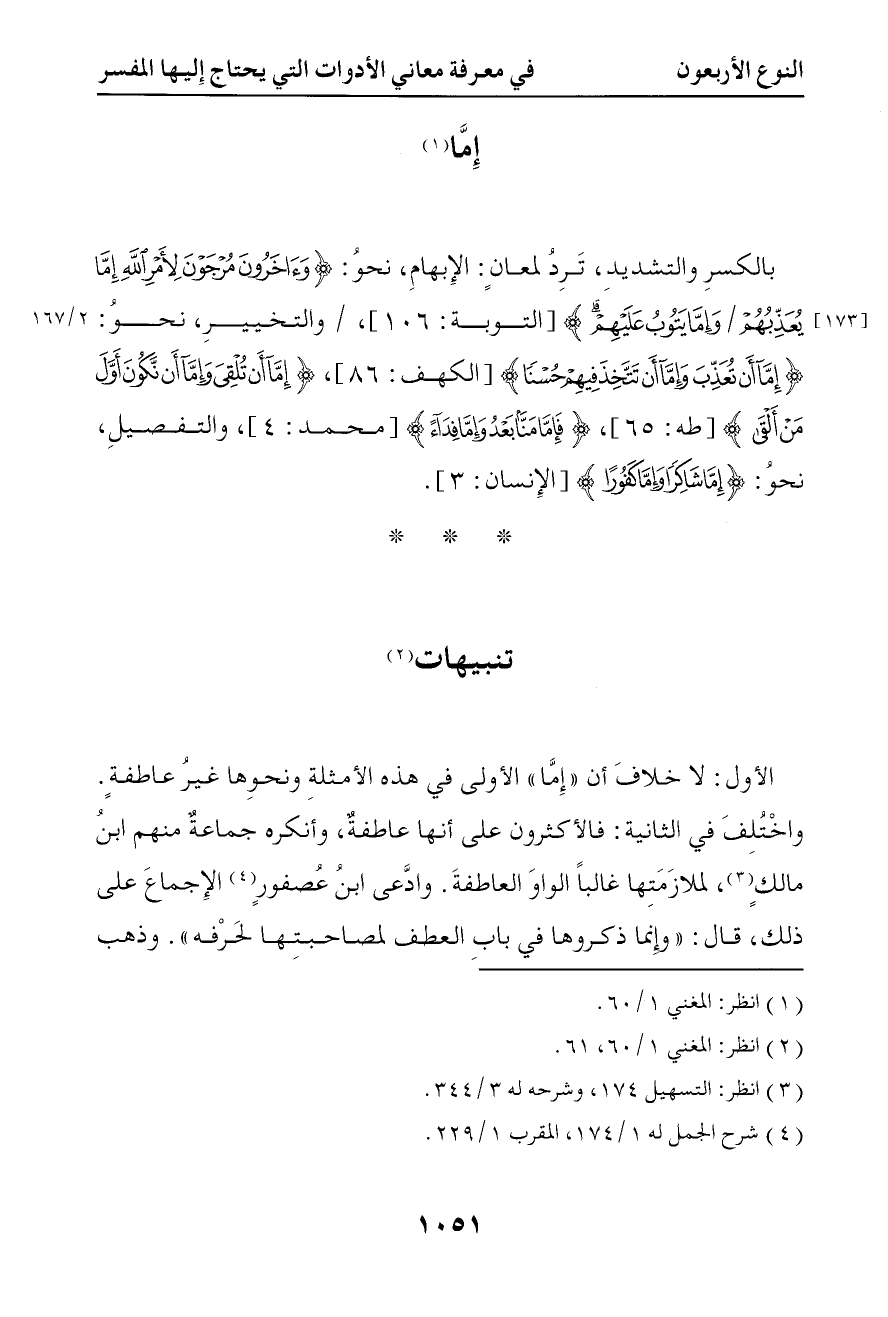 والتفصيل نحو { إما شاكرا وإما كفورا } تنبيهات الأول