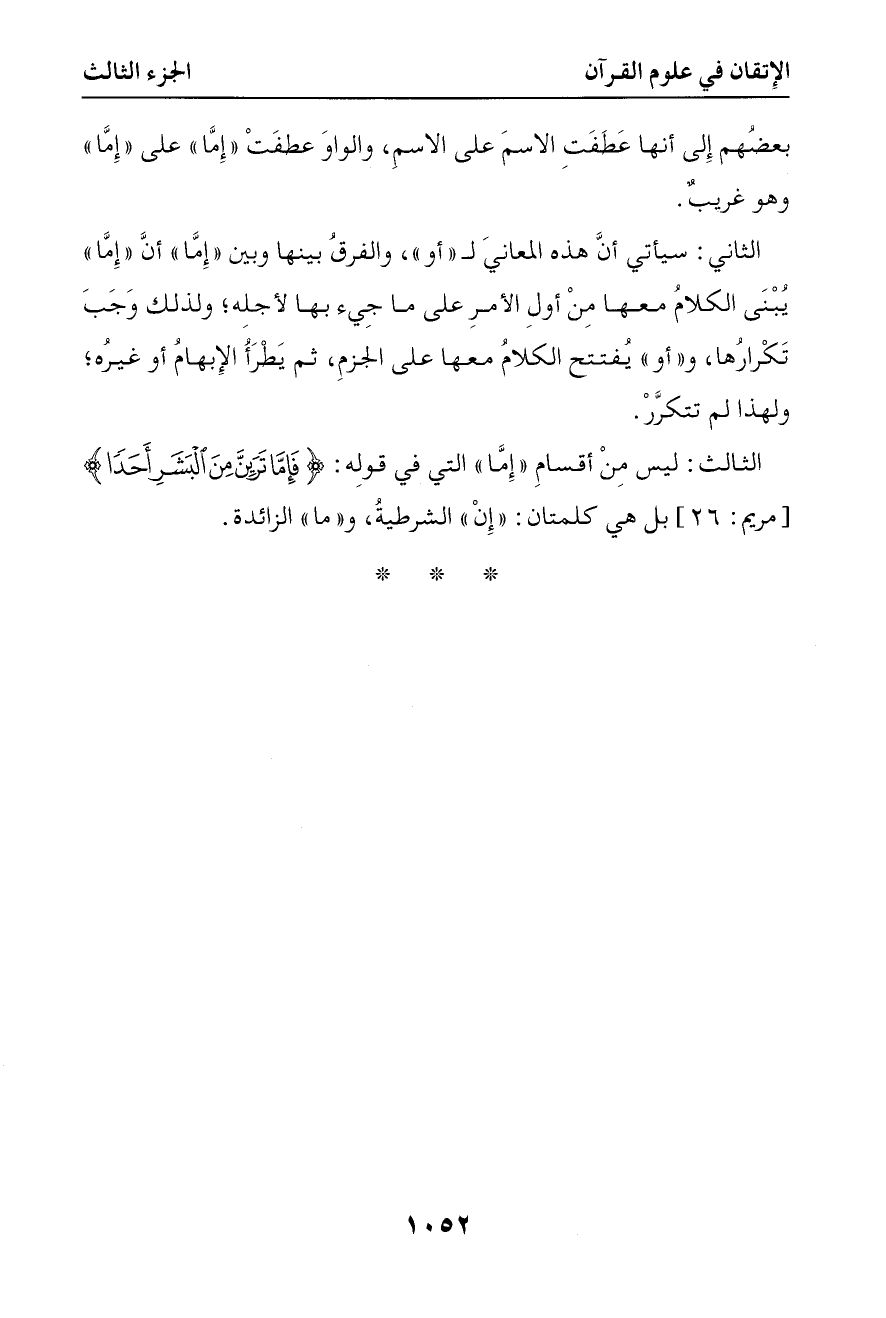 3041 ليس من أقسام إما التي في قوله { فإما ترين من البشر أحدا } بل هي كلمتان إن الشرطية وما الزائدة