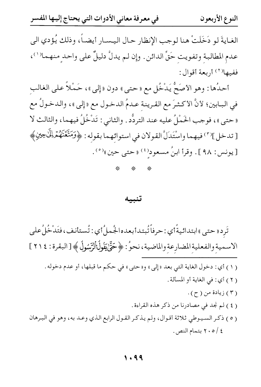 والثالث لا فيهما واستدل للقولين في استوائهما بقوله { ومتعناهم إلى حين } وقرأ ابن مسعود { حتى حين } تنبيه