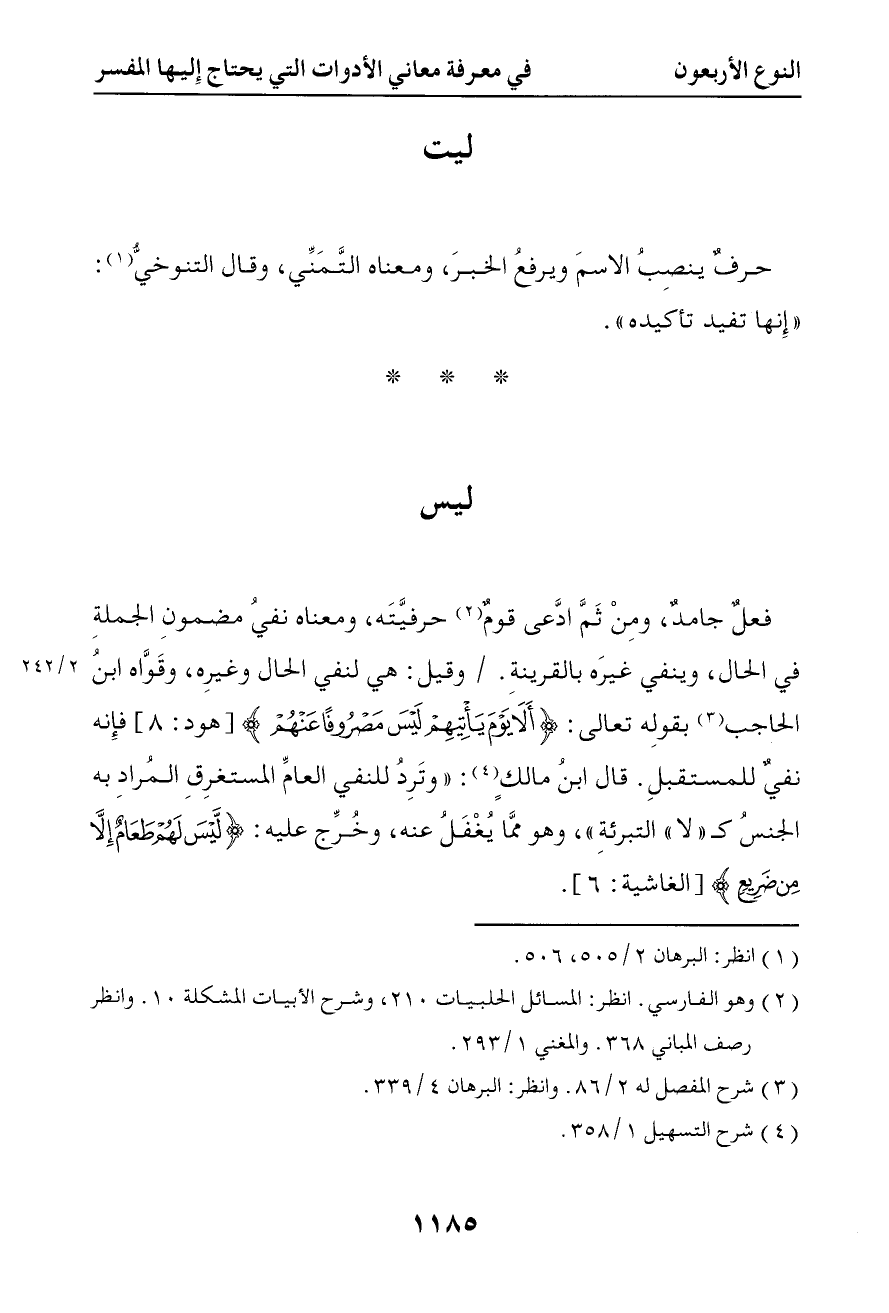 3335 حرف ينصب الاسم ويرفع الخبر ومعناه التمني وقال التنوخي إنها تفيد تأكيده 88 - ليس