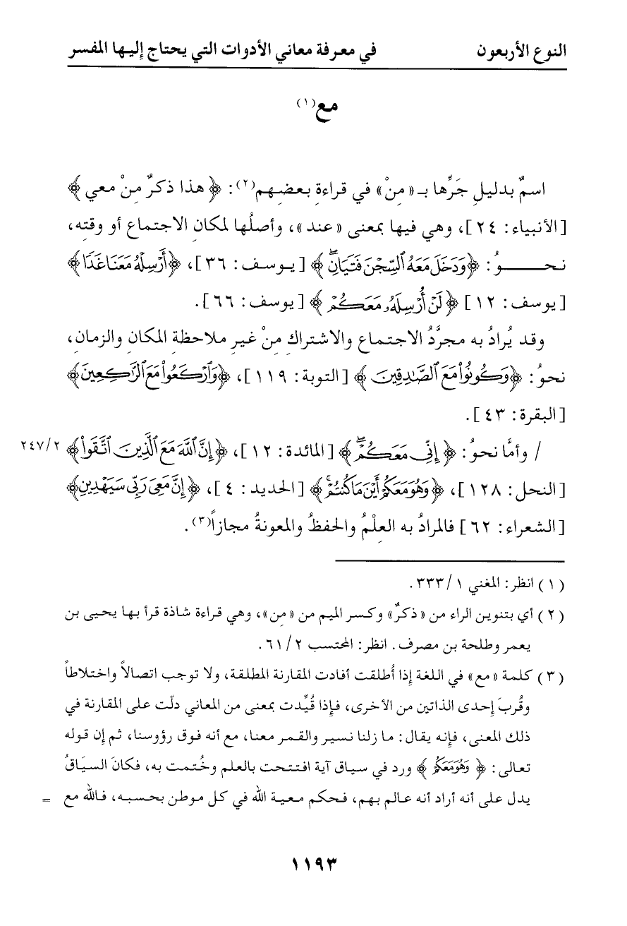3358 وقد يراد به مجرد الاجتماع والاشتراك من غير ملاحظة المكان والزمان نحو { وكونوا مع الصادقين } { واركعوا مع الراكعين }