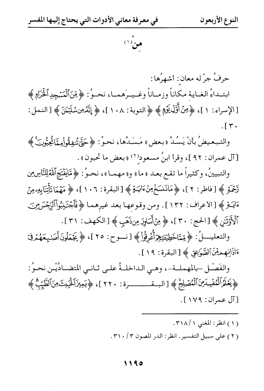 ابتداء الغاية مكانا وزمانا وغيرهما نحو { من المسجد الحرام } { من أول يوم } { إنه من سليمان }