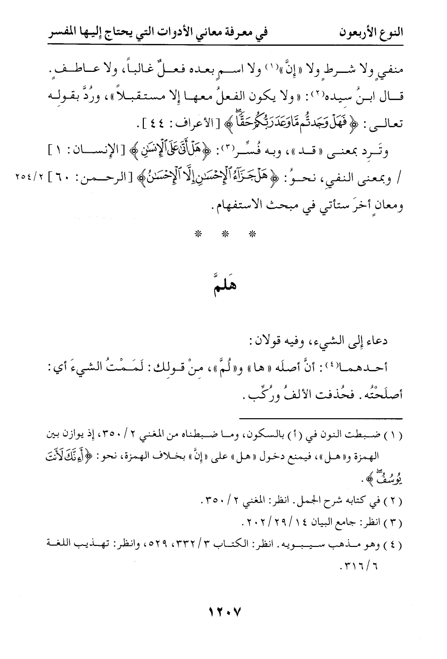 3405 وبمعنى النفي نحو { هل جزاء الإحسان إلا الإحسان } ومعان أخر ستأتي في مبحث الاستفهام 104 - هلم