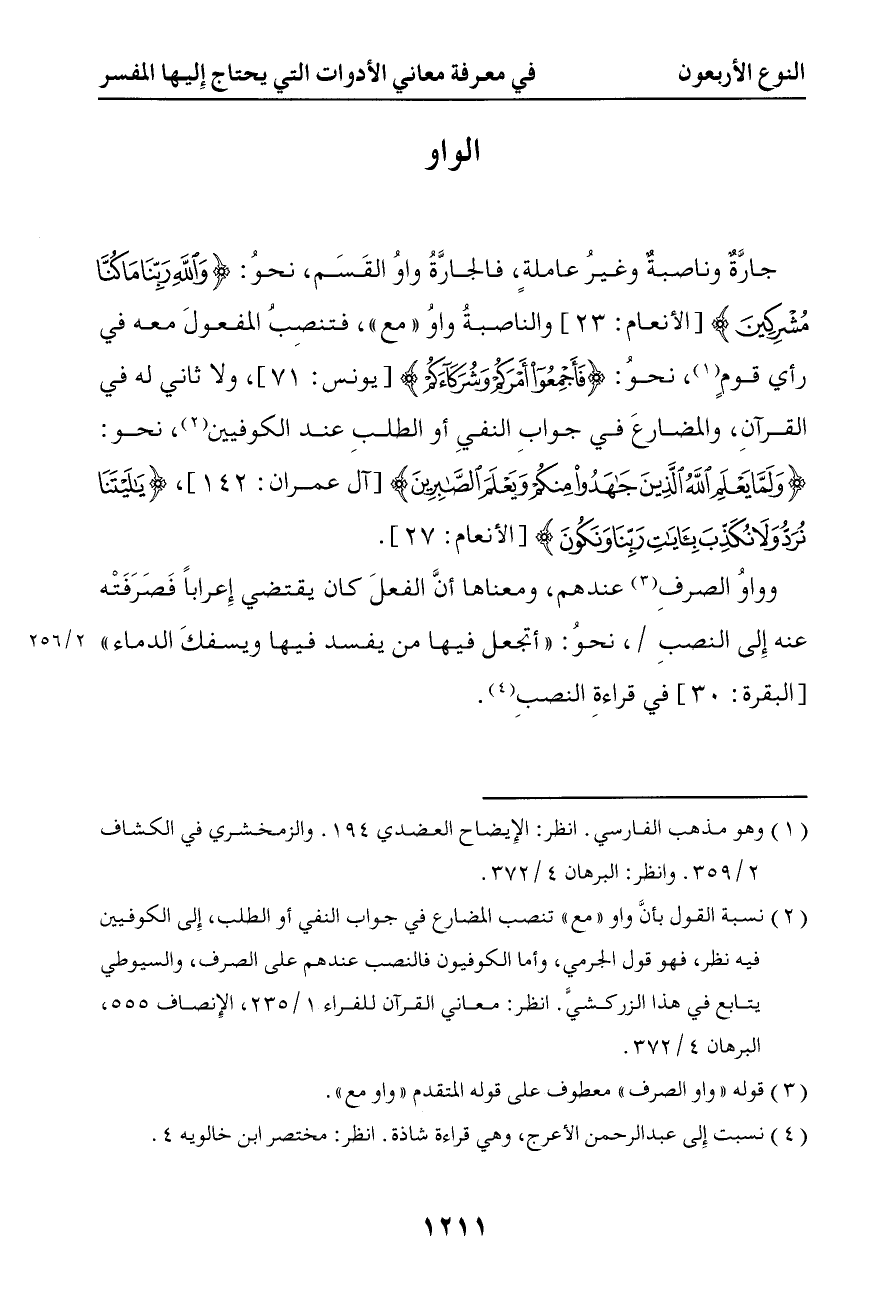 3414 واو الصرف عندهم ومعناها أن الفعل كان يقتضي إعرابا فصرفته عنه إلى النصب نحو { أتجعل فيها من يفسد فيها ويسفك الدماء } في قراءة النصب