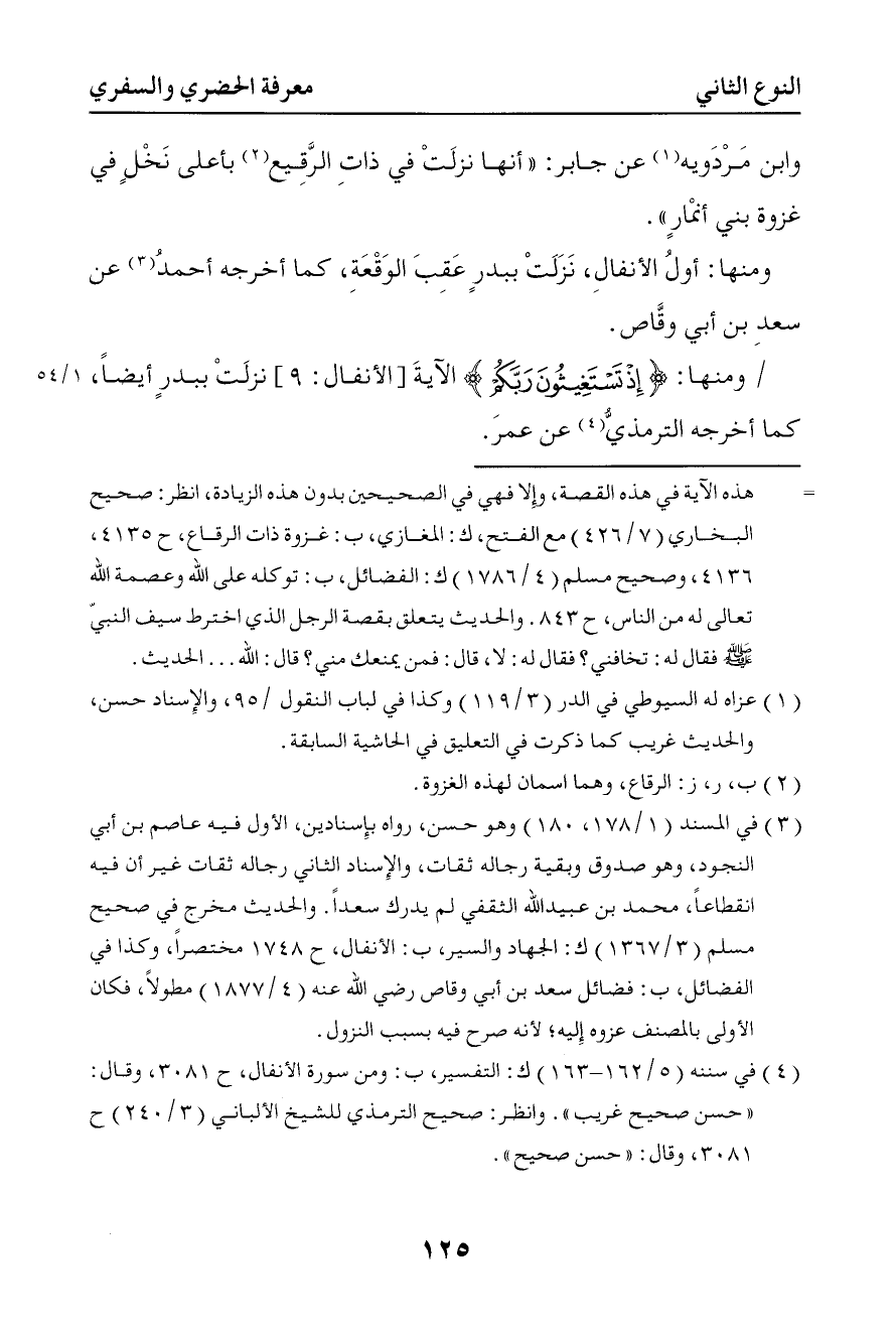 208 ومنها أول الأنفال نزلت ببدر عقب الوقعة كما أخرجه أحمد عن سعد بن أبي وقاص