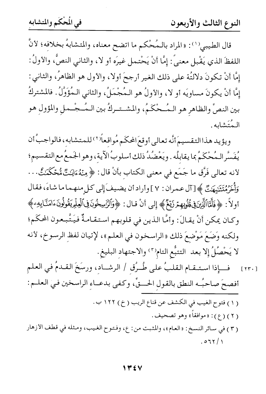 3776 قال الطيبي المراد بالمحكم ما اتضح معناه والمتشابه بخلافه لأن اللفظ الذي يقبل معنى إما أن يحتمل غيره أو لا والثاني النص والأول إما أن