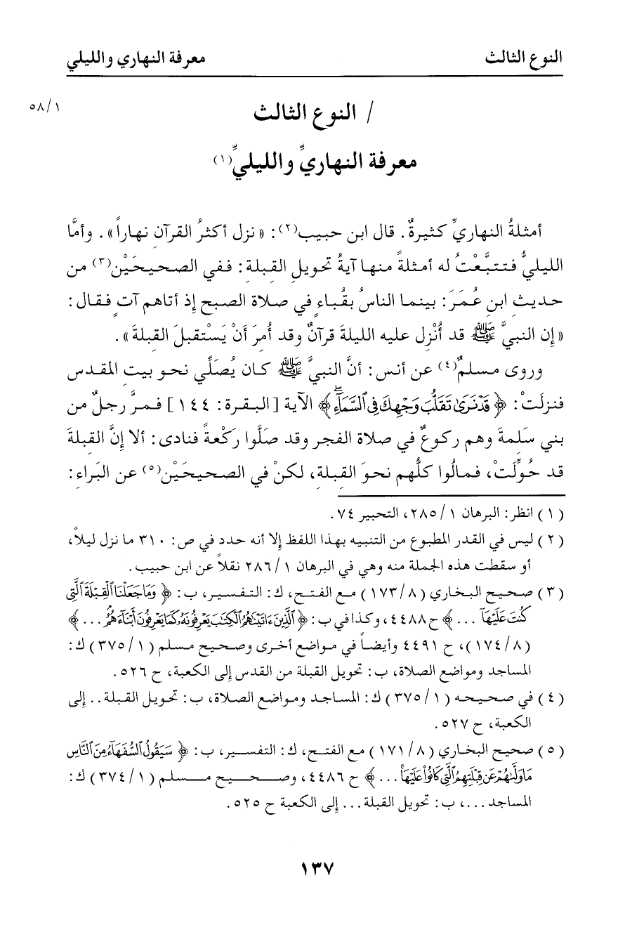 236 أمثلة النهاري كثيرة قال ابن حبيب نزل أكثر القرآن نهارا وأما الليل فتتبعت له أمثلة