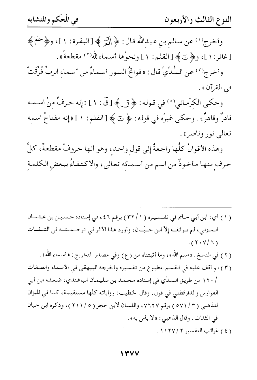 3854 وأخرج عن سالم بن عبد الله قال { الم } و { حم } و { ن } ونحوها اسم الله مقطعة