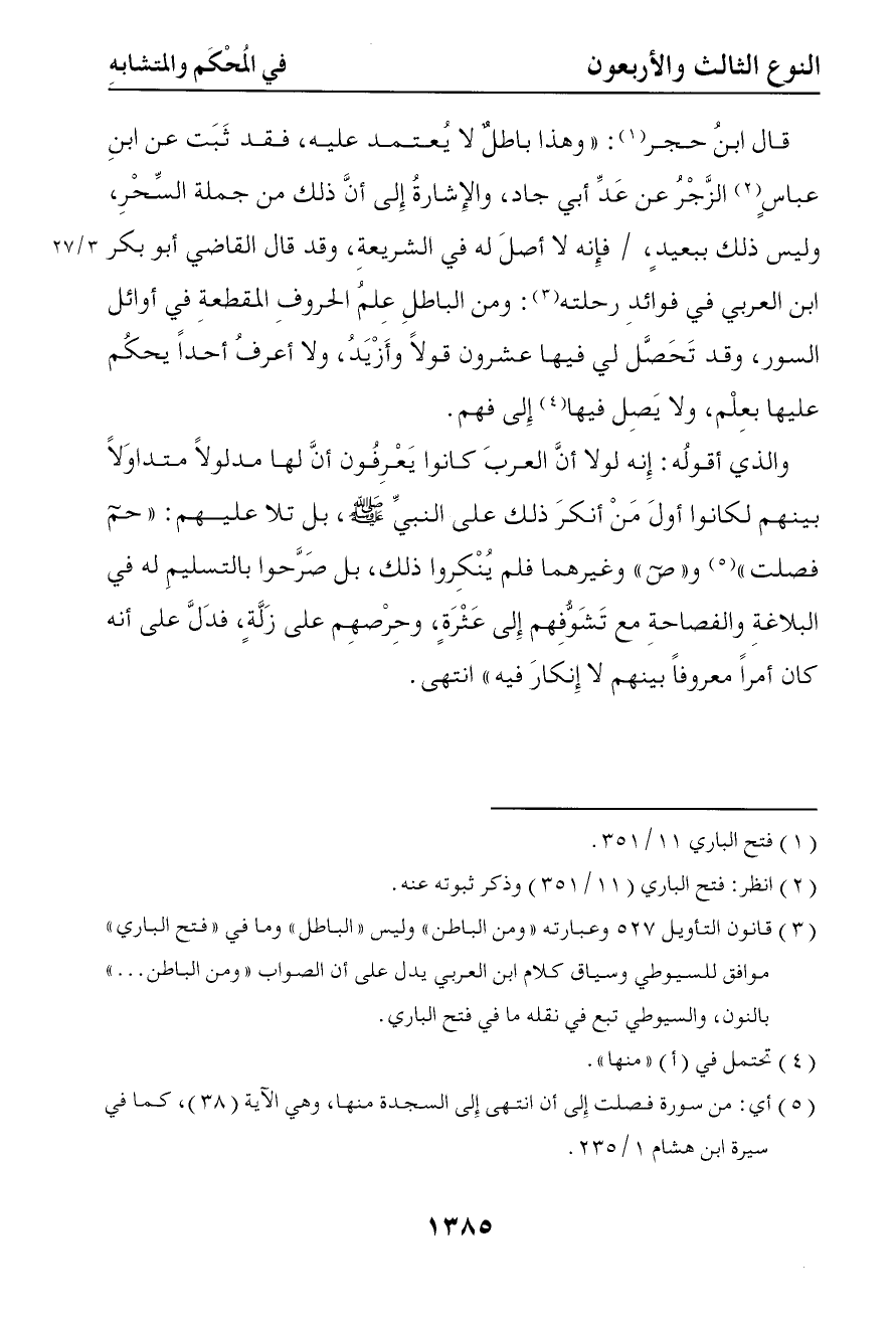 3880 وقد قال القاضي أبو بكر بن العربي في فوائد رحلته ومن الباطل علم الحروف المقطعة في أوائل السور