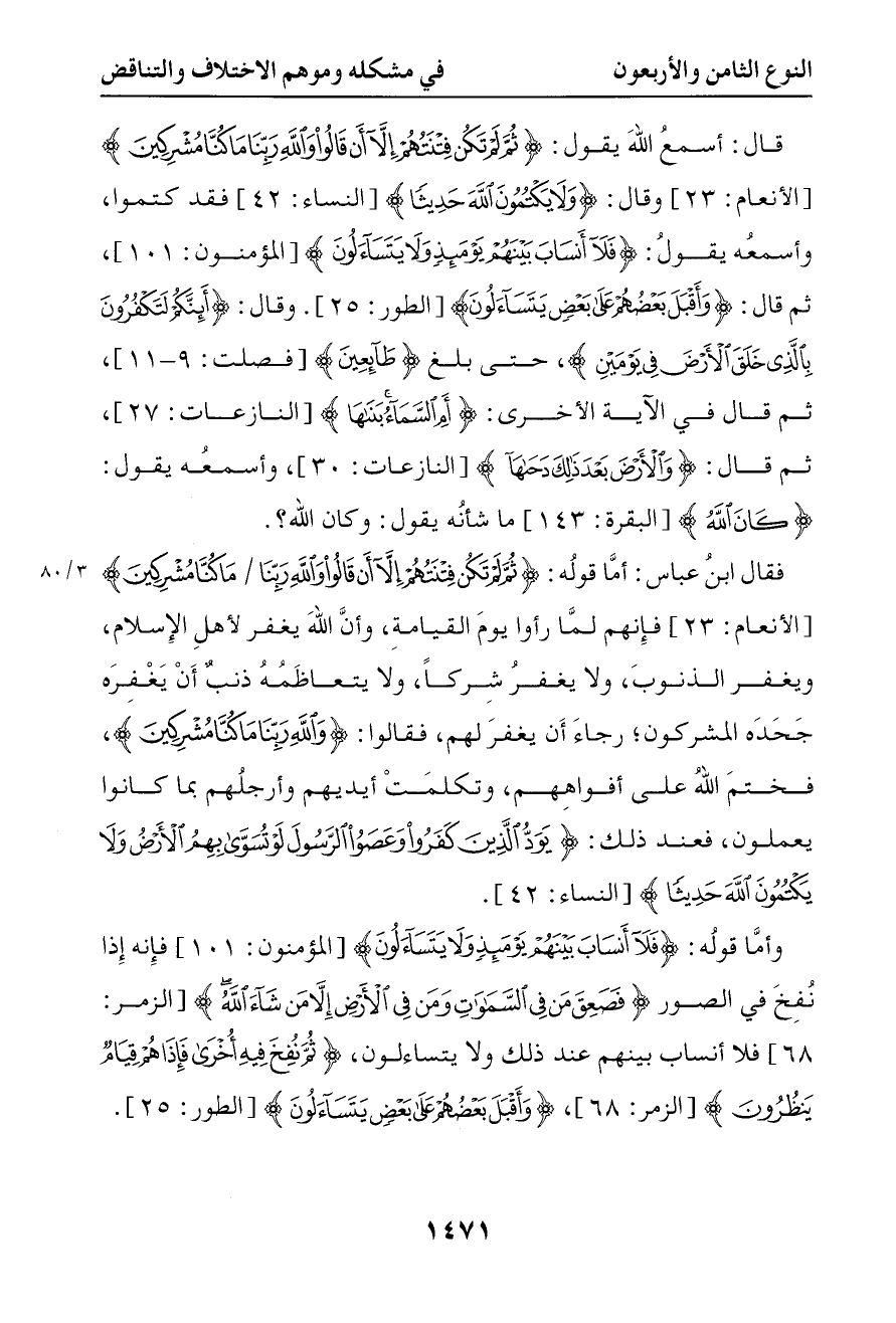 قال أسمع الله يقول { ثم لم تكن فتنتهم إلا أن قالوا والله ربنا ما كنا مشركين } وقال { ولا يكتمون الله حديثا } فقد كتموا وأسمعه يقول { فلا أنساب بينهم يومئذ ولا يتساءلون } ثم قال { وأقبل بعضهم على بعض يتساءلون } وقال { أئنكم لتكفرون بالذي خلق الأرض في يومين } حتى بلغ { طائعين } ثم قال في الآية الأخرى { أم السماء بناها } ثم قال { والأرض بعد ذلك دحاها } وأسمعه يقول { كان الله } ما شأنه يقول { وكان الله }
