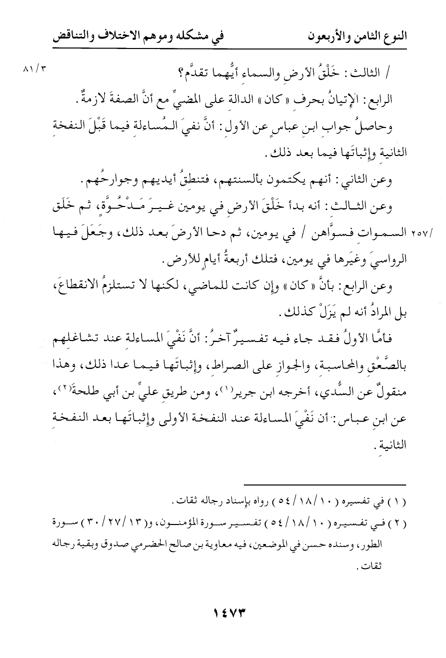 الثالث خلق الأرض أو السماء أيهما تقدم