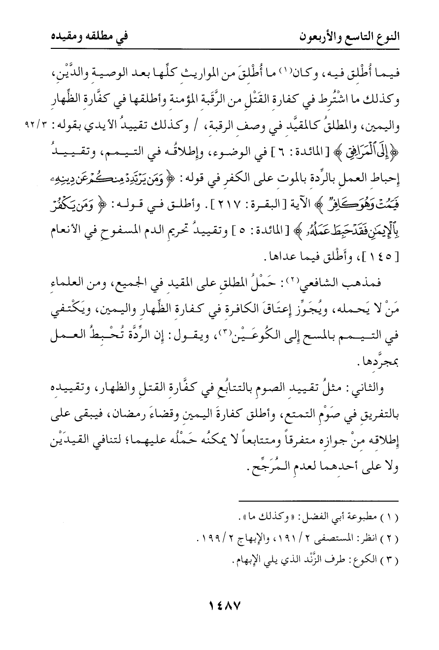 4188 والثاني مثل تقييد الصوم بالتتابع في كفارة القتل والظهار وتقييده بالتفريق في صوم التمتع