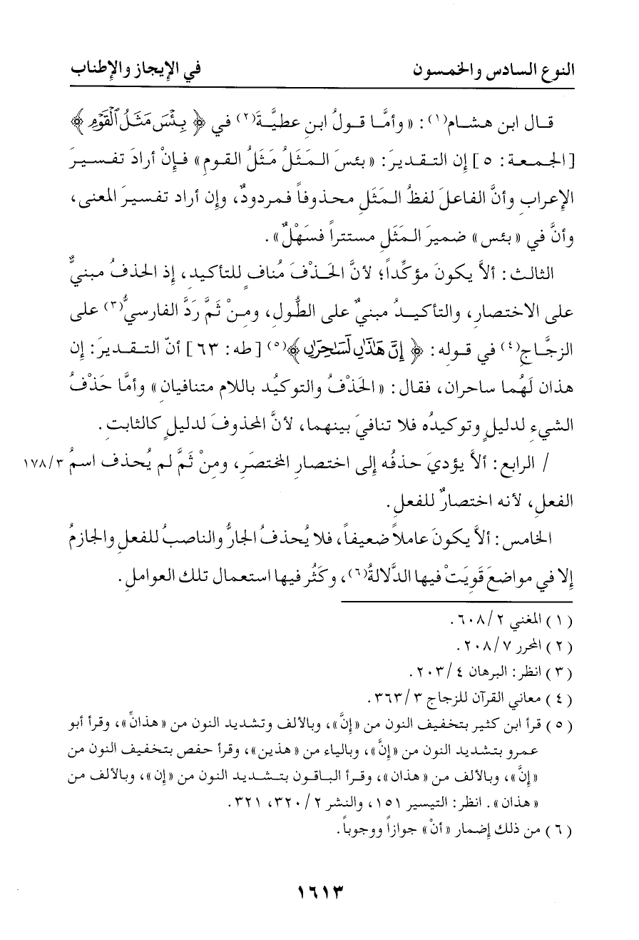 على الإختصار والتأكيد مبنى على الطول ومن ثم رد الفارسي على الزجاج في قوله في { إن هذان لساحران } إن التقدير ( إن هذان لهما ساحران ) فقال الحذف والتوكيد باللام متنافيان وأما حذف الشيء لدليل وتوكيده فلا تنافي بينهما لأن المحذوف لدليل كالثابت