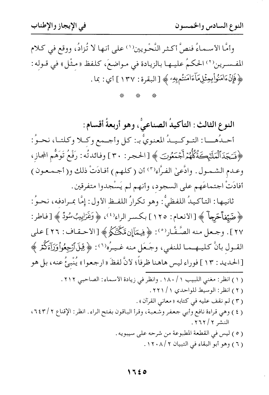 4682 وإما الأسماء فنص أكثر النحويين على أنها لا تزاد ووقع في كلام المفسرين الحكم عليها بالزيادة في مواضع كلفظ ( مثل ) في قوله { فإن آمنوا بمثل ما آمنتم به } أي بما النوع الثالث التأكيد الصناعي