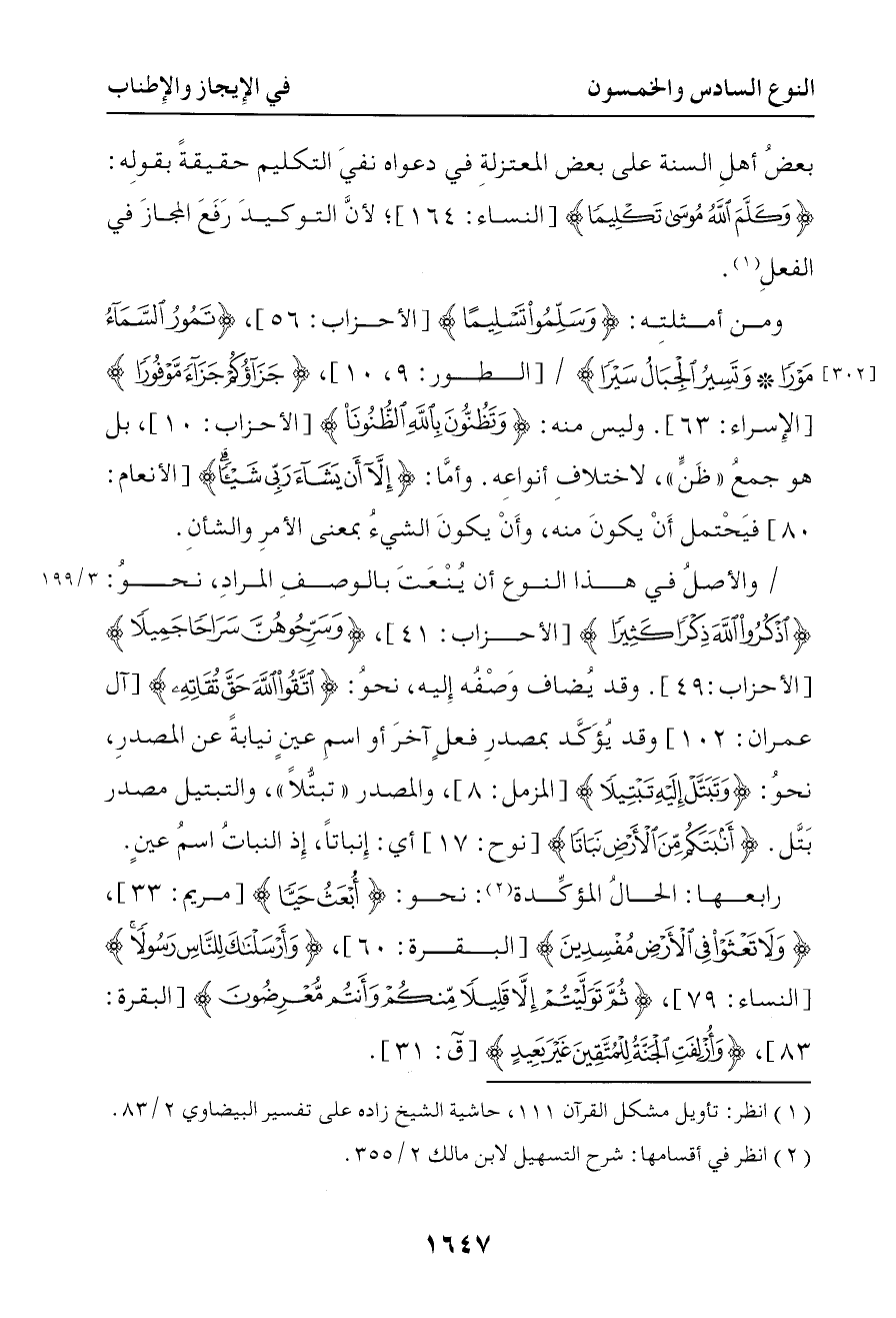 ومن أمثلته { وسلموا تسليما } { يوم تمور السماء مورا وتسير الجبال سيرا } { جزاؤكم جزاء موفورا }
