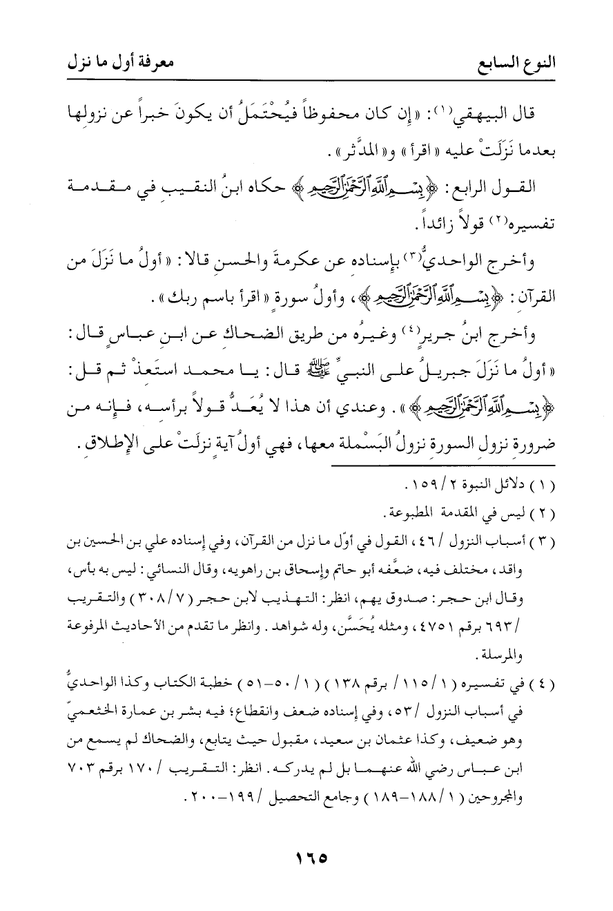289 وعندي أن هذا لا يعد قولا برأسه فإنه من ضرورة نزول السورة نزول البسملة معها فهي أول آية نزلت على الإطلاق