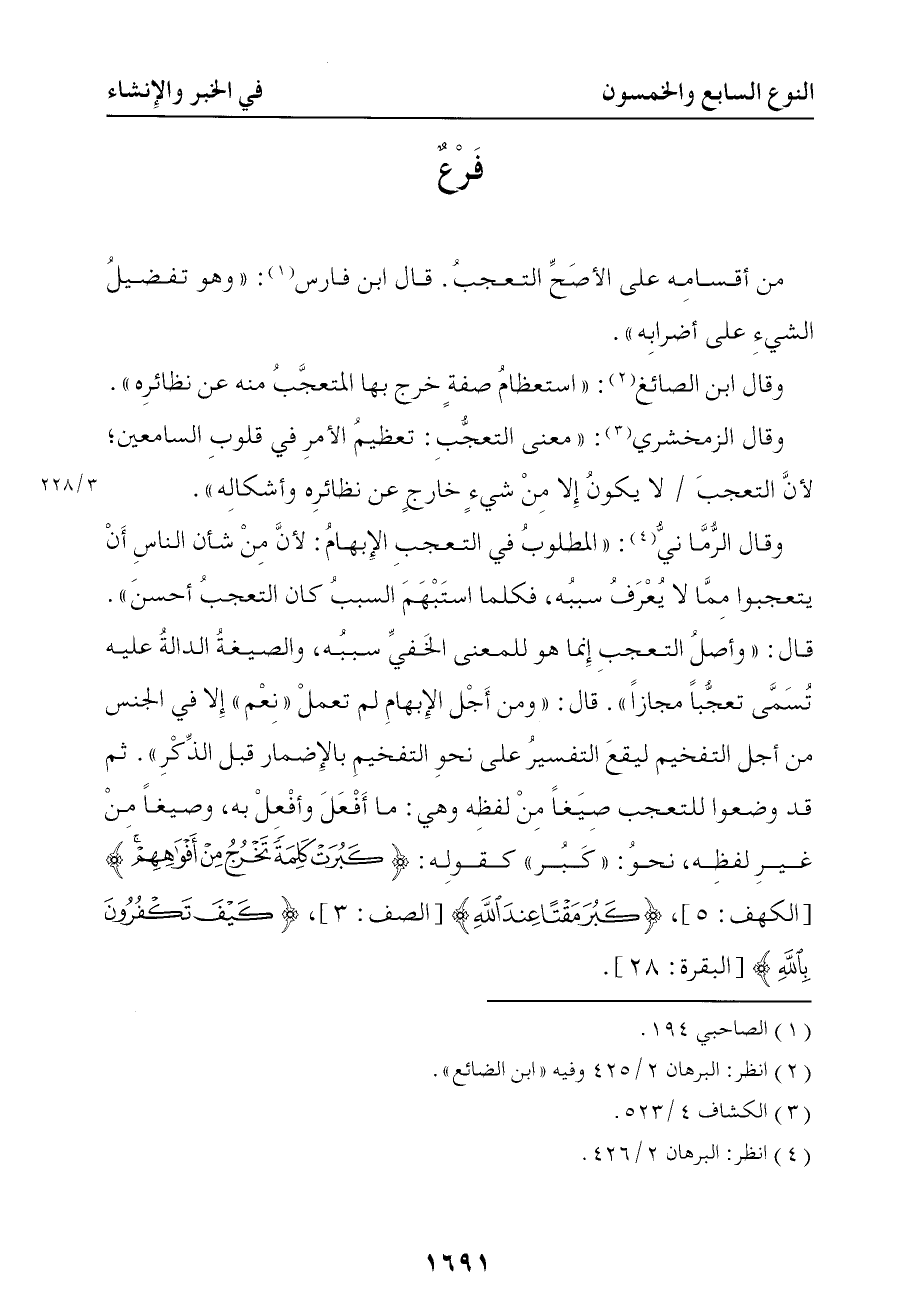 4849 وقال الرماني المطلوب في التعجب الإبهام لأن من شأن الناس أن يتعجبوا مما لا يعرف سببه فكلما استبهم السبب كان التعجب أحسن