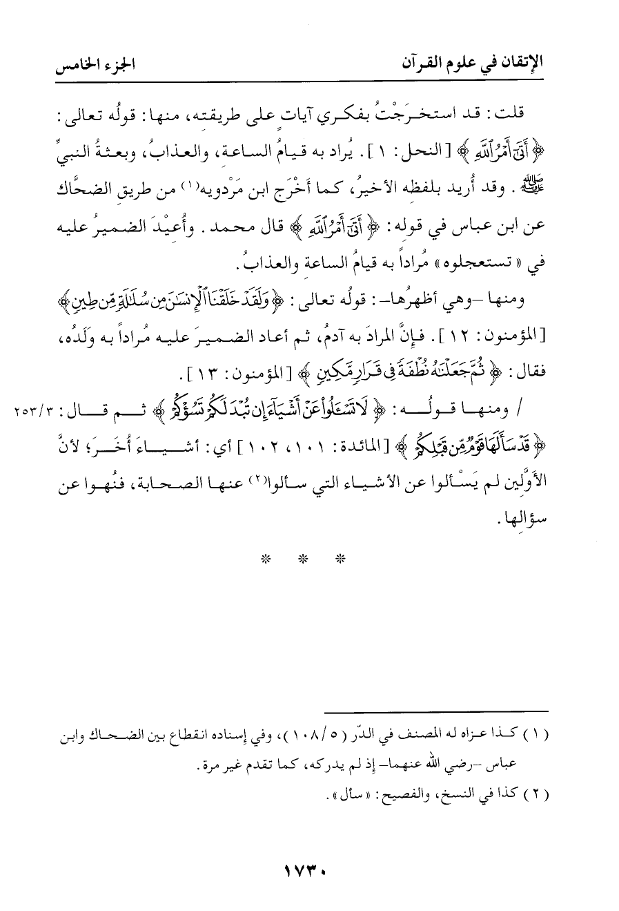 كتاب الإتقان في علوم القرآن (ط مجمع الملك فهد) (اسم الجزء: 5)