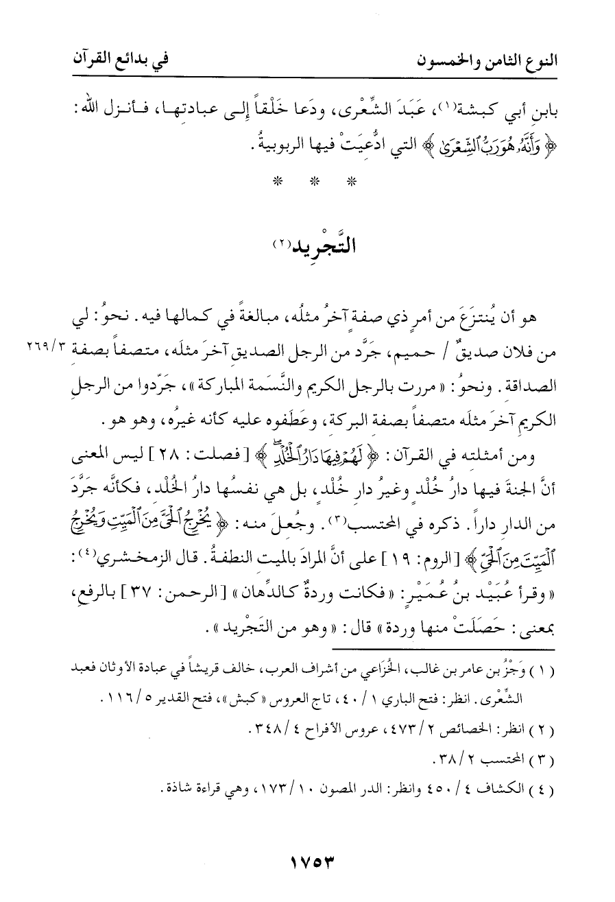 بابن أبي كبشة عبد الشعرى ودعا خلقا إلى عبادتها فأنزل الله تعالى { وأنه هو رب الشعرى } التي ادعيت فيها الربوبية 18 - التجريد