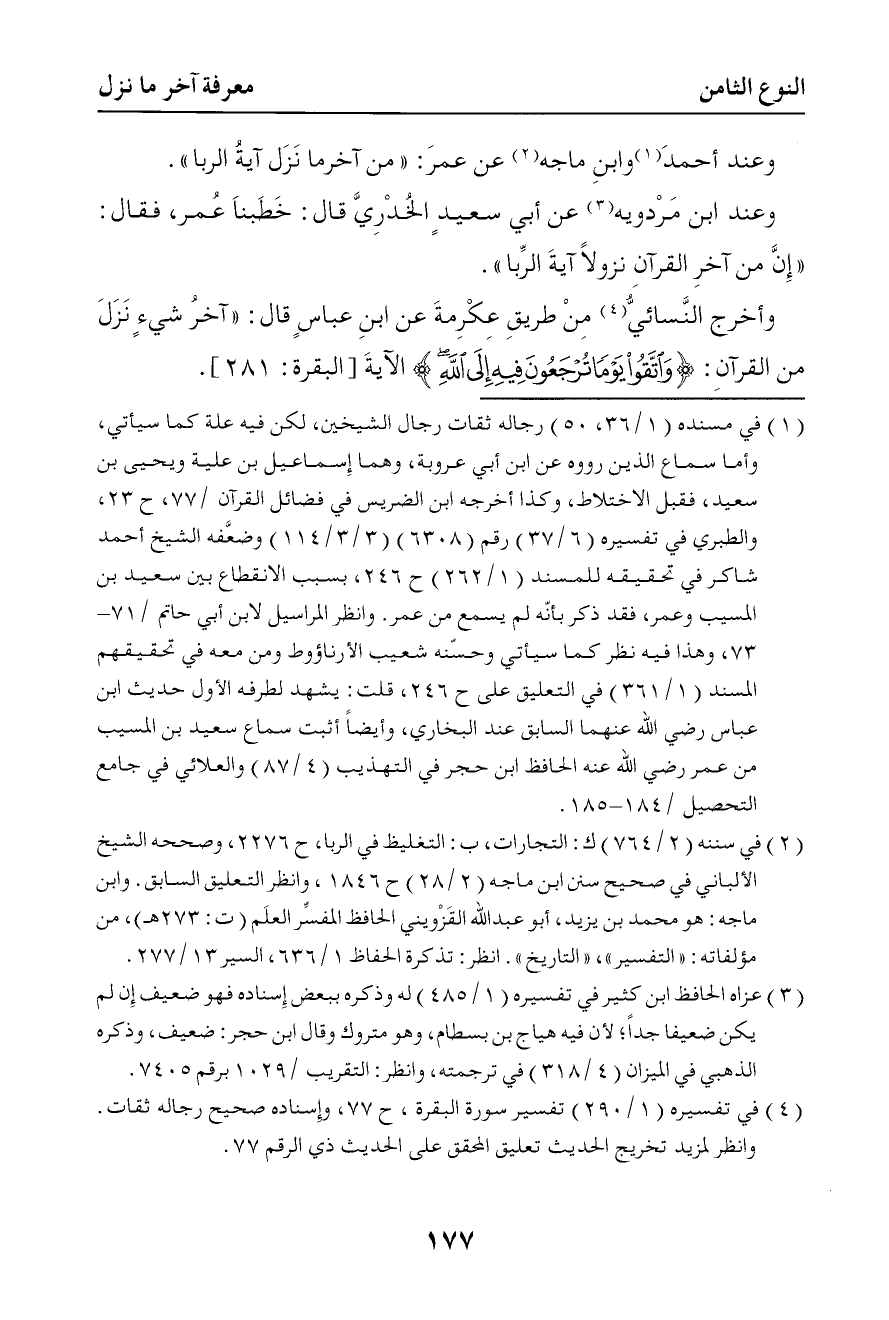 311 وأخرج النسائي من طريق عكرمة عن ابن عباس قال آخر شيء نزل من القرآن { واتقوا يوما ترجعون فيه } الآية