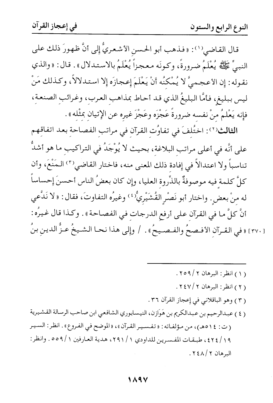 واختار أبو نصر القشيري وغيره التفاوت فقال لا ندعي أن كل ما في القرآن أرفع الدرجات في الفصاحة وكذا قال غيره في القرآن الأفصح والفصيح