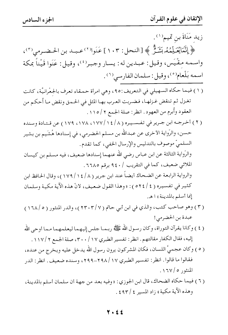 كتاب الإتقان في علوم القرآن (ط مجمع الملك فهد) (اسم الجزء: 6)