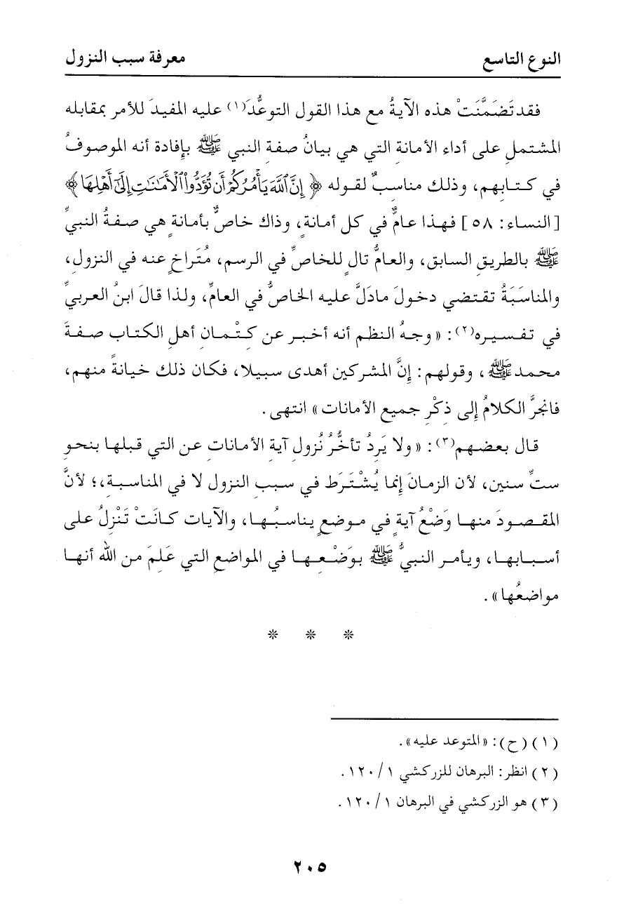 359 قال بعضهم ولا يرد تأخر نزول آية الأمانات عن التي قبلها بنحو ست سنين لأن الزمان إنما يشترط في سبب النزول لا في المناسبة لأن المقصود منها وضع آية في موضع يناسبها والآيات كانت تنزل على أسبابها ويأمر النبي صلى الله عليه وسلم بوضعها في المواضع التي علم من الله أنها مواضعها