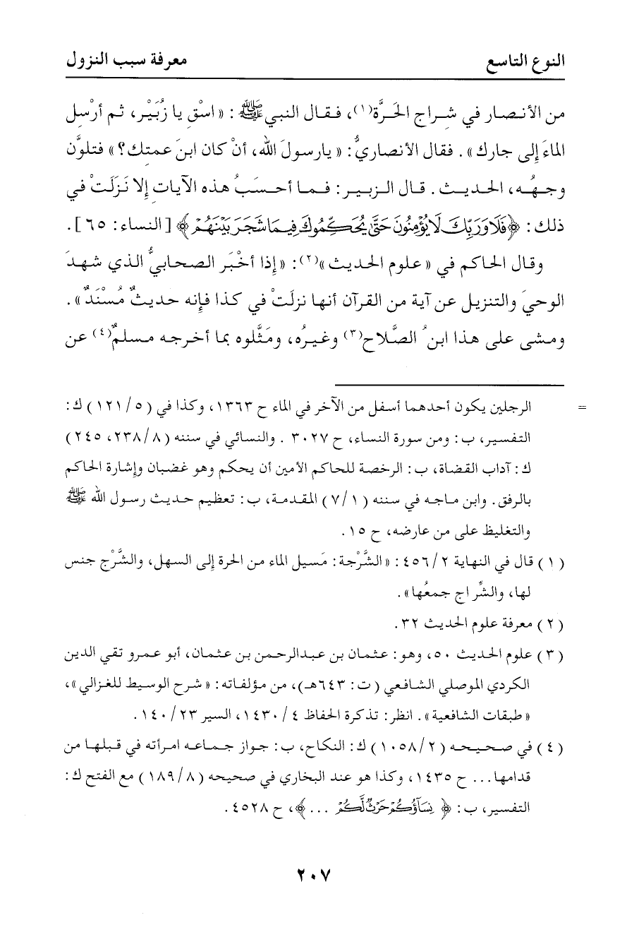 362 قال الحاكم في علوم الحديث إذا أخبر الصحابي الذي شهد الوحي والتنزيل عن آية من القرآن أنها نزلت في كذا فإنه حديث مسند ومشى على هذا ابن الصلاح وغيره ومثلوه بما أخرجه مسلم عن