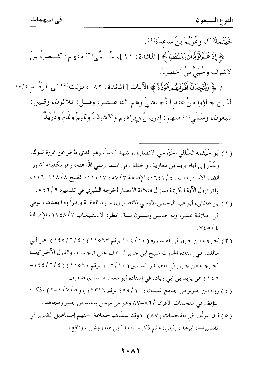 5809 { ولتجدن أقربهم مودة } ألايات نزلت في الوفد الذين جاءوا من عند النجاشي وهم اثنا عشر وقيل ثلاثون وقيل سبعون وسمي منهم إدريس وإبراهيم والأشرف وتميم وتمام ودريد