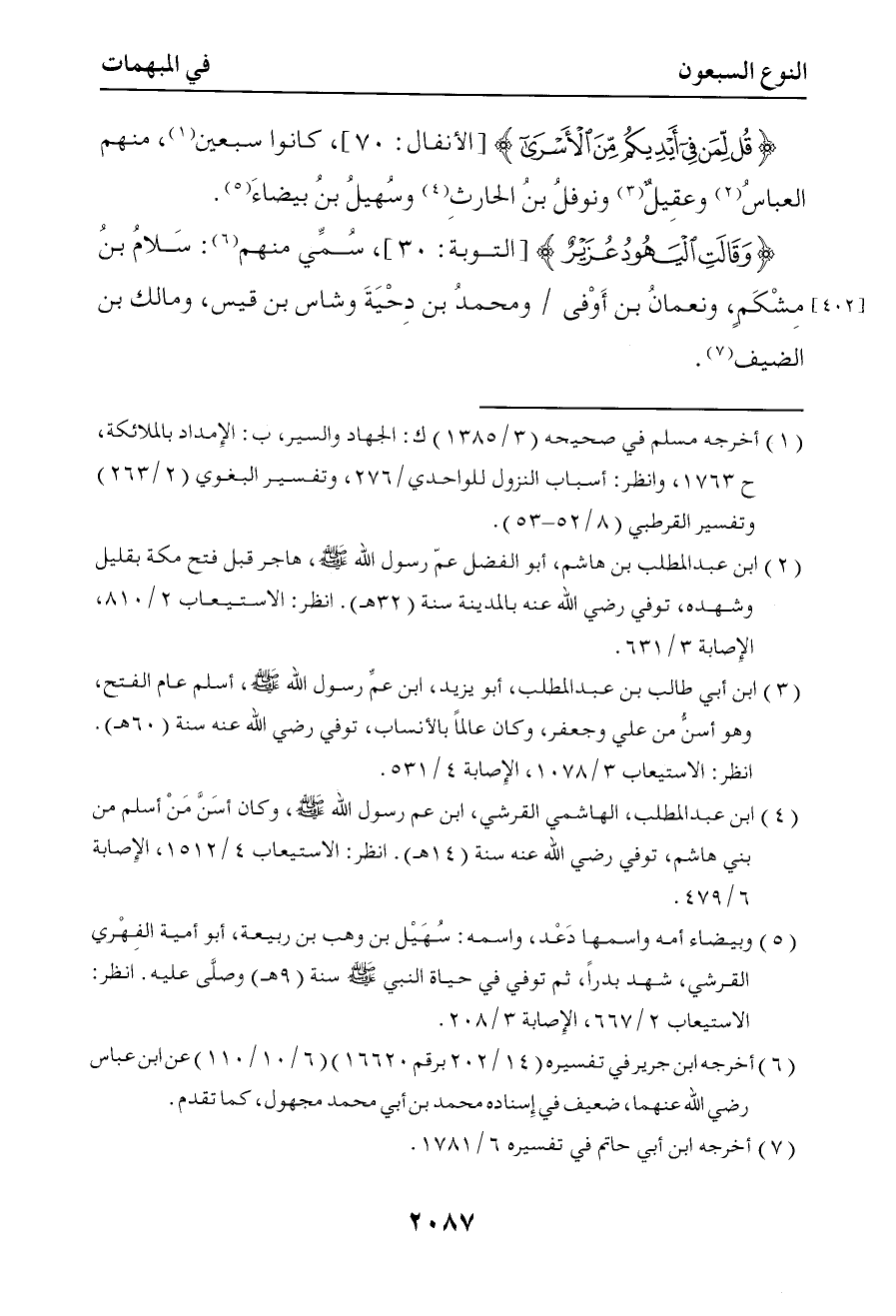 5821 { قل لمن في أيديكم من الأسرى } كانوا سبعين منهم العباس وعقيل ونوفل بن الحارث وسهيل بن بيضاء