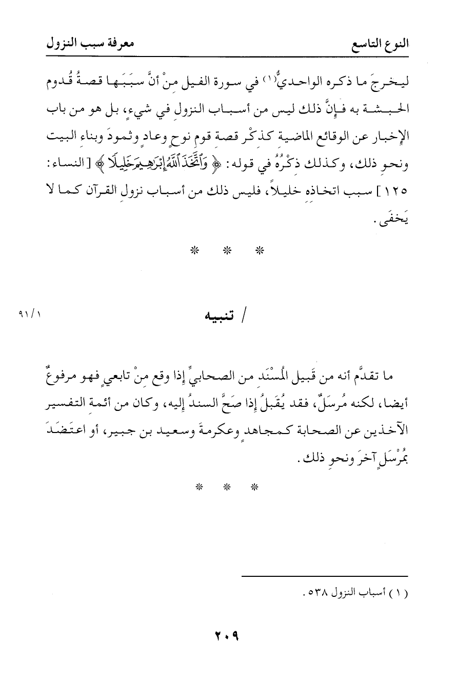 366 ما تقدم أنه من قبيل المسند من الصحابي إذا وقع من تابعي فهو مرفوع أيضا لكنه مرسل فقد يقبل إذا صح السند إليه وكان من أئمة التفسير الآخذين عن الصحابة كمجاهد وعكرمة وسعيد بن جبير أو اعتضد بمرسل آخر ونحو ذلك