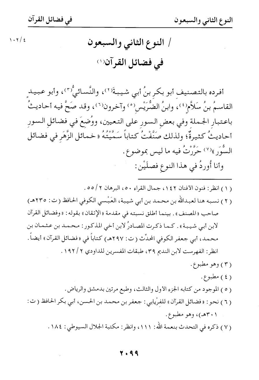 5855 أفرده بالتصنيف أبو بكر بن أبي شيبة والنسائي وأبو عبيد القاسم بن سلام وابن الضريس وآخرون وقد صح فيه أحاديث باعتبار الجملة وفي بعض السور على التعيين ووضع في فضائل القرآن أحاديث كثيرة ولذلك صنفت كتابا سميته ( خمائل الزهر في فضائل السور ) حررت فيه ما ليس بموضوع