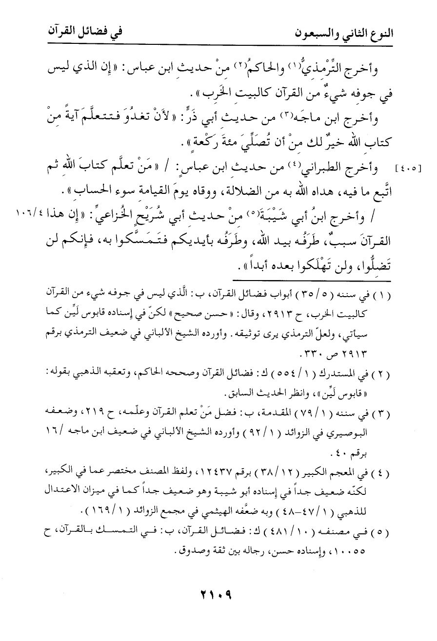 5880 وأخرج الترمذي والحاكم من حديث ابن عباس ( إن الذي ليس في جوفه شيء من القرآن كالبيت الخرب )