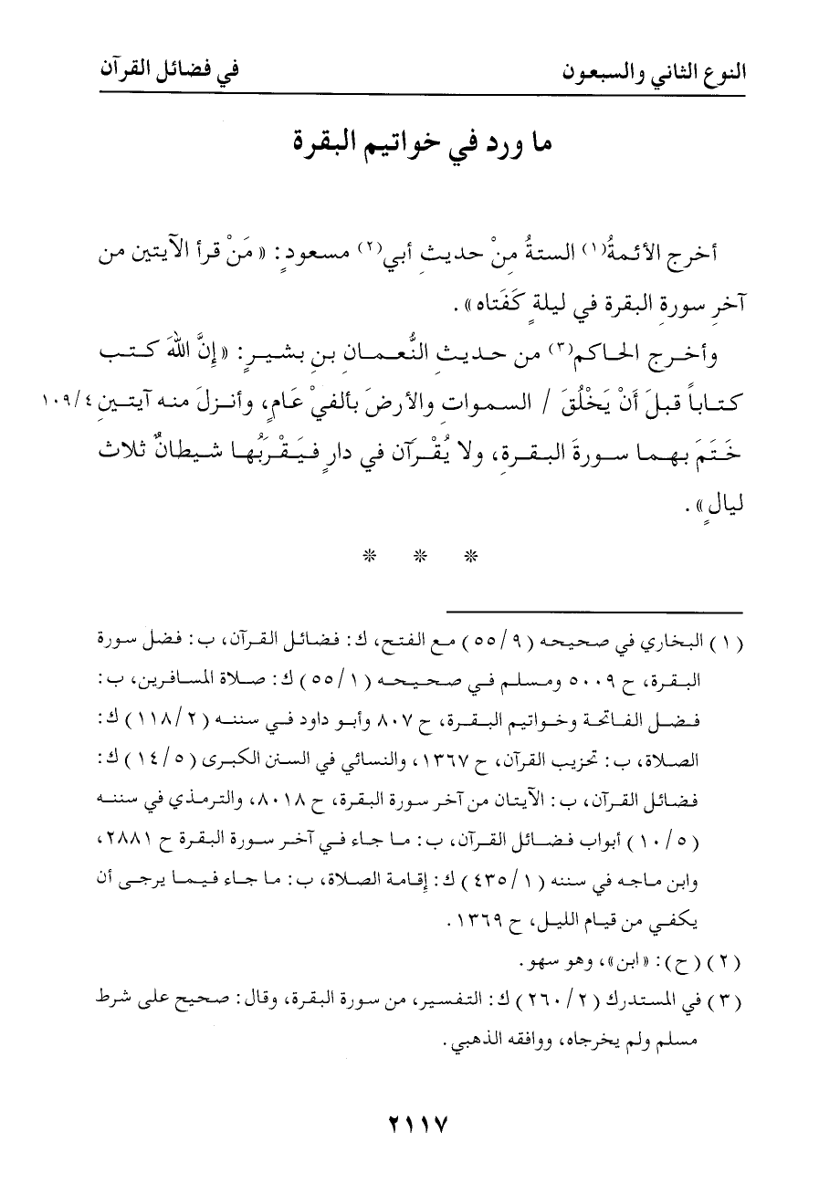 ) ما ورد في خواتيم البقرة