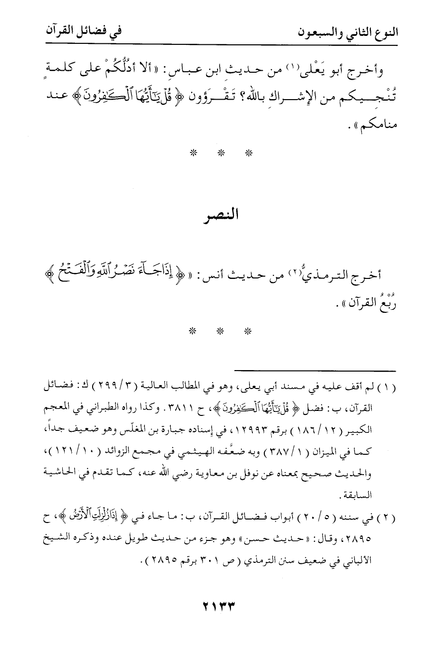 5945 أخرج الترمذي من حديث أنس ( إذا جاء نصر الله والفتح ربع القرآن