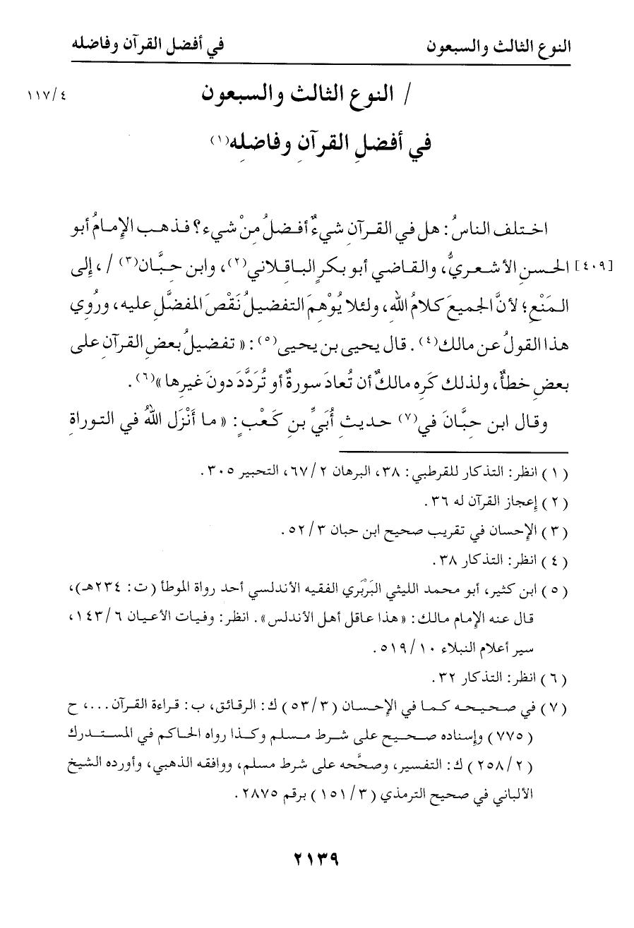 النوع الثالث والسبعون في أفضل القرآن وفاضله