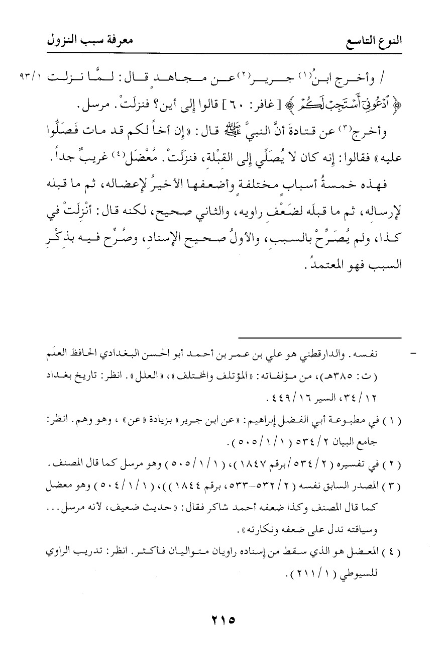 فهذه خمسة أسباب مختلفة وأضعفها الأخير لإعضاله ثم ما قبله لإرساله ثم ما قبله لضعف رواته والثاني صحيح لكنه قال قد أنزلت في كذا ولم يصرح بالسبب والأول صحيح الإسناد وصرح فيه بذكر السبب فهو المعتمد