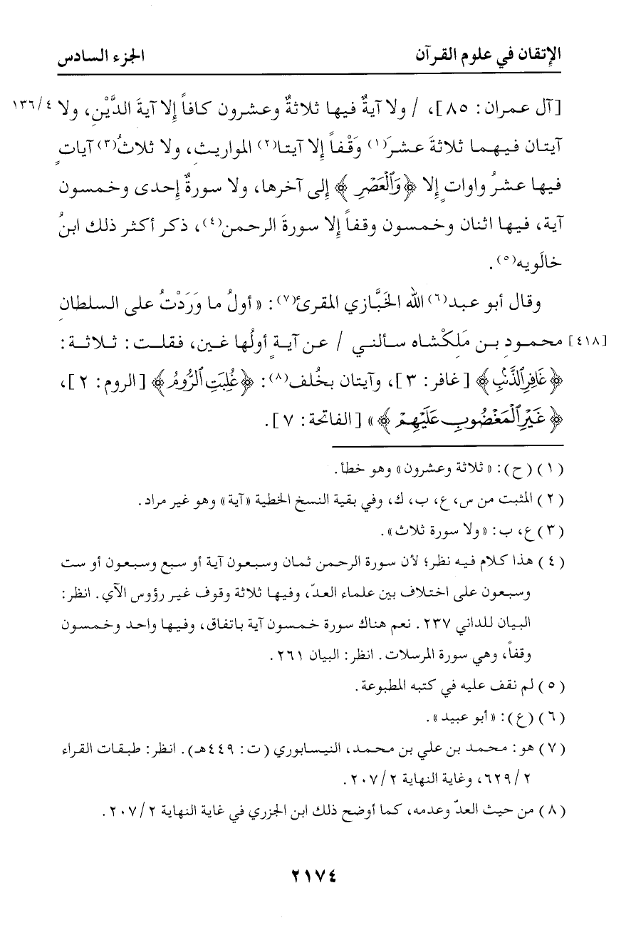 كتاب الإتقان في علوم القرآن (ط مجمع الملك فهد) (اسم الجزء: 6)