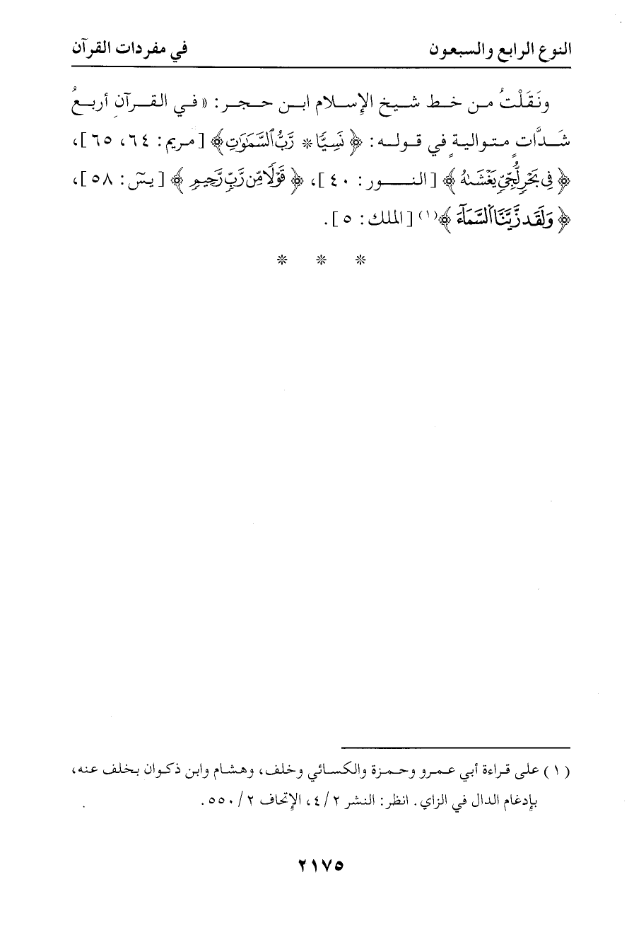 6047 ونقلت من خط شيخ الإسلام ابن حجر في القرآن أربع شدات متوالية في قوله