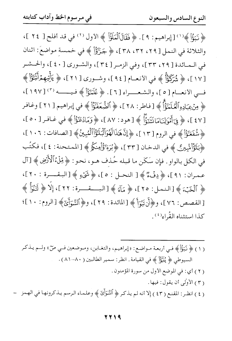 6156 فإن سكن ما قبله حذف هو نحو ( ملء الأرض ) دفء شيء الخبء ماء إلا ( لتنوأ ) و ( أن تبؤأ ) و ( السوآى ) كذا استثناه الفراء