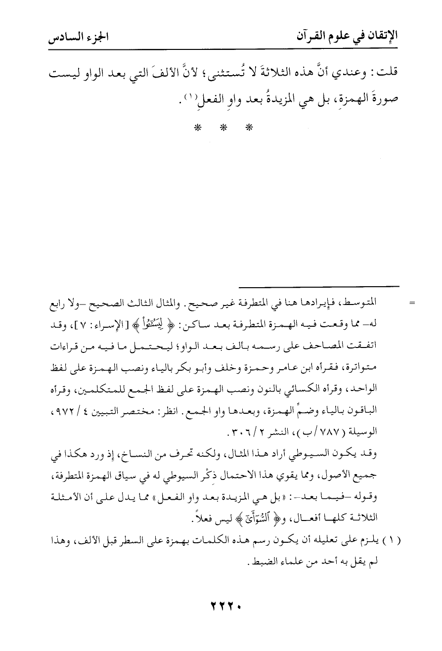 6157 قلت وعندي أن هذه الثلاثة لا تستثنى لأن الألف التي بعد الواو ليست صورة الهمزة بل هي المزيدة بعد واو الفعل
