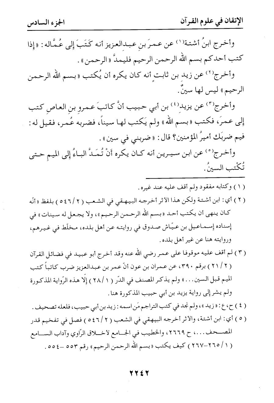6201 وأخرج عن زيد بن ثابت أنه كان يكره أن تكتب ( بسم الله الرحمن الرحيم ليس لها سين )