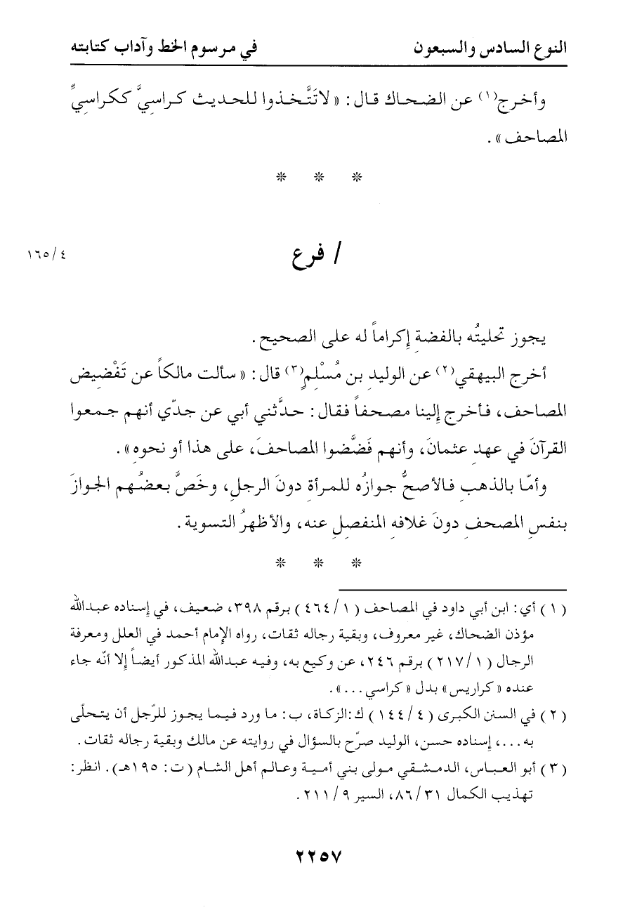 6250 وأخرج عن الضحاك قال لا تتخذوا للحديث كراسي ككراسي المصاحف 5 - فرع
