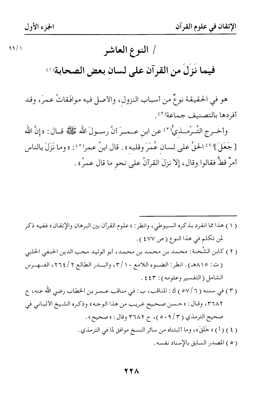 النوع العاشر فيما أنزل من القرآن على لسان بعض الصحابة