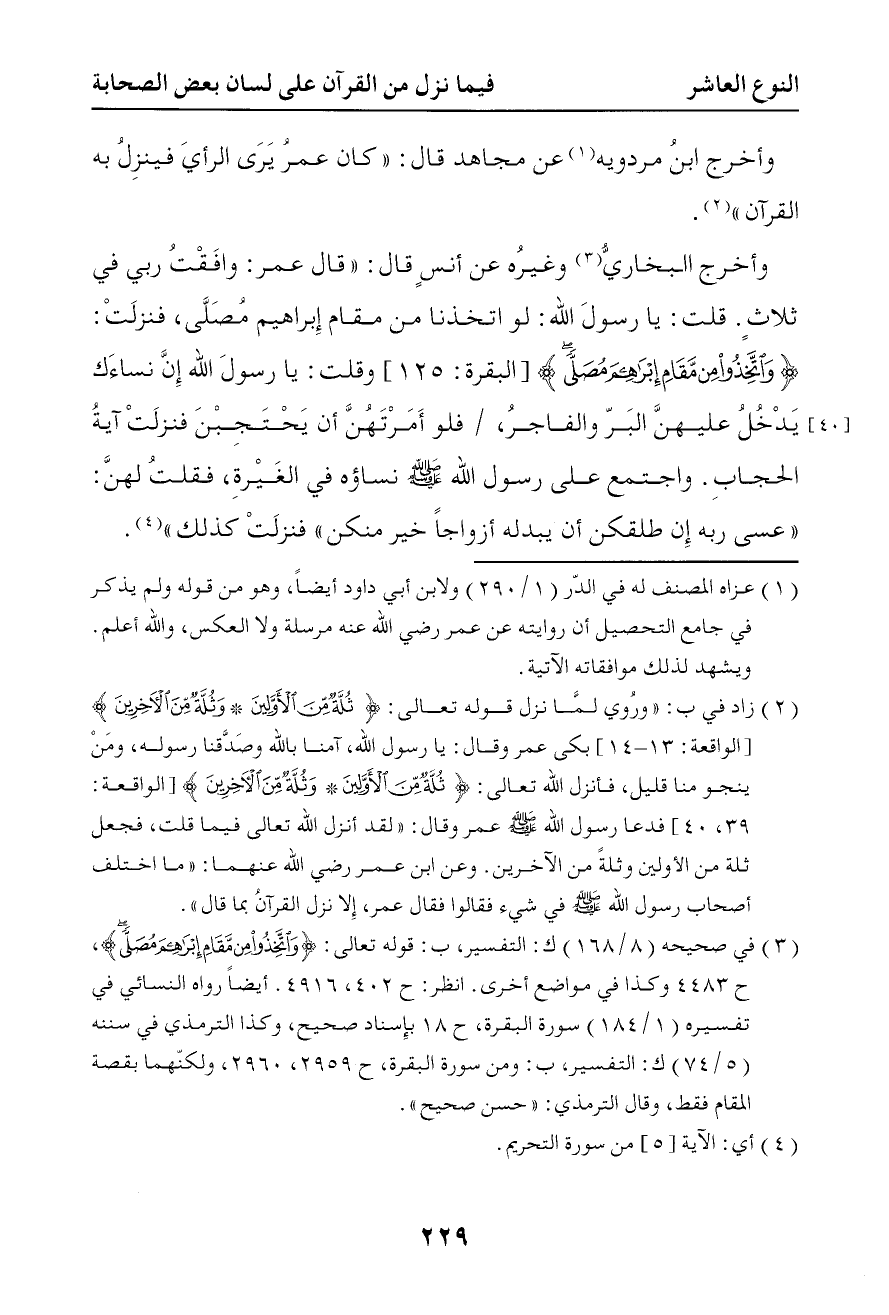 403 وأخرج البخاري وغيره عن أنس قال قال عمر وافقت ربي في ثلاث قلت يا رسول الله لو اتخذنا من مقام إبراهيم مصلى فنزلت { واتخذوا من مقام إبراهيم مصلى } وقلت يا رسول الله إن نساءك يدخل عليهن البر والفاجر فلو أمرتهن أن يحتجبن فنزلت آية الحجاب واجتمع على رسول الله صلى الله عليه وسلم نساؤه في الغيرة فقلت لهن { عسى ربه إن طلقكن أن يبدله أزواجا خيرا منكن } فنزلت كذلك